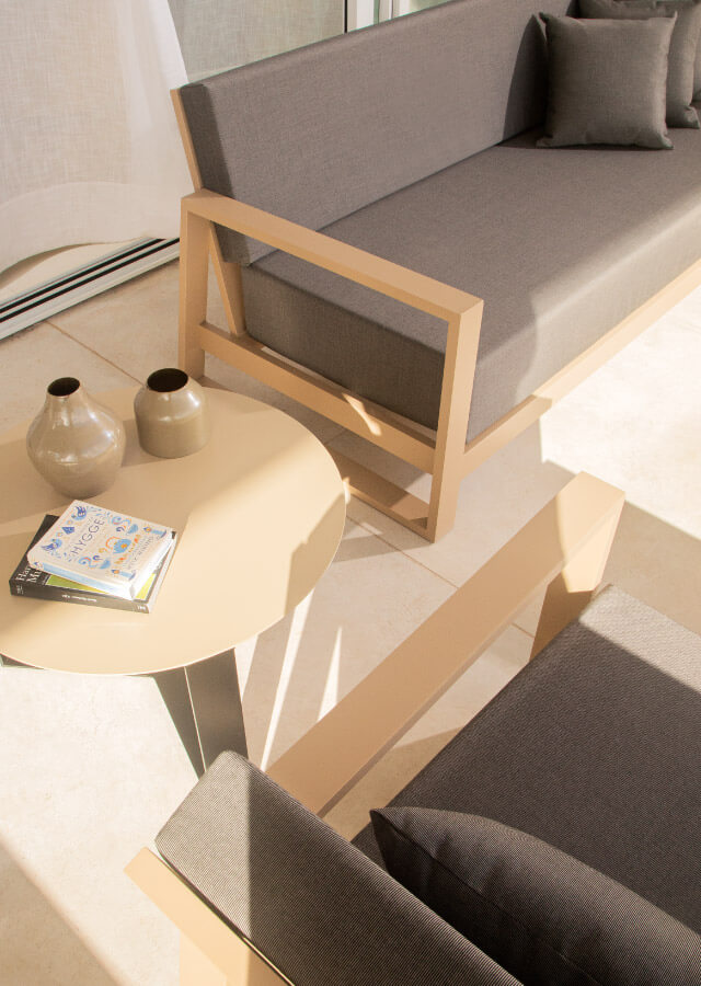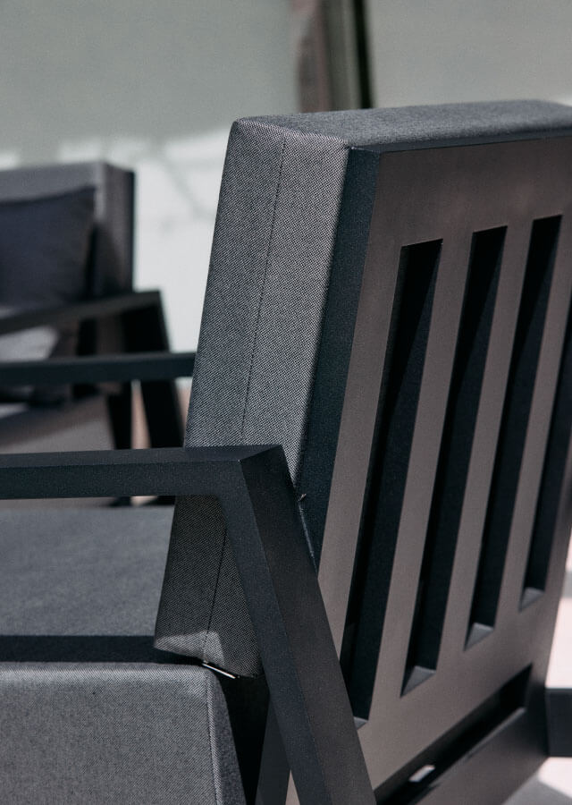 Colección de diseño amplio y generoso. Su diseño audaz conjuga estilo y robustez, asegurando un confort sin igual. Pensada con ánimo de permanecer y pertenecer, debido a la resistencia de los materiales, y en la memoria, gracias a su diseño atemporal.