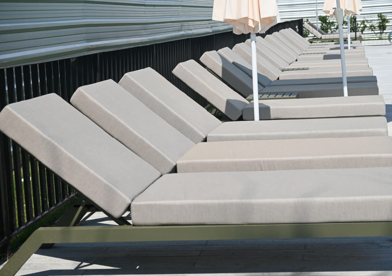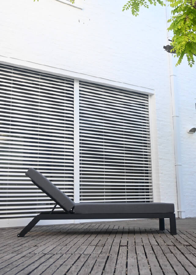 Reposera inspirada en el estilo de vida mediterráneo. Partiendo de estructuras robustas que evocan la geometría de la arquitectura tradicional jugando con los volúmenes constructivos, que invita a socializar en conexión con la naturaleza.