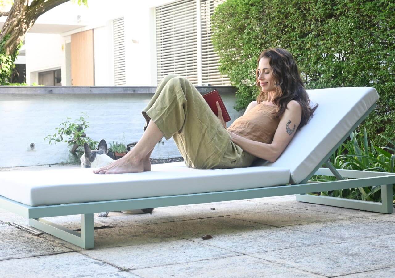 Reposera diseñada y pensada bajo el concepto de serenidad oriental. Sus líneas totalmente rectas inspiran armonía y calma. Es una reposera baja, conectada con la tierra; que es nuestro refugio de paz espiritual. Pensada para que la puedas personalizar al máximo con los colores y acabados que encajen mejor con tus espacios exteriores.